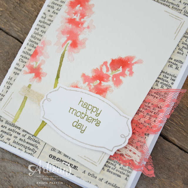 I used the boarderless watercolor technique for this card. You stamp your image with Sahara Sand in (I stamped off first for an even lighter image) and then watercolor. Earlier in the month I shared another card with this technique. Check it out!